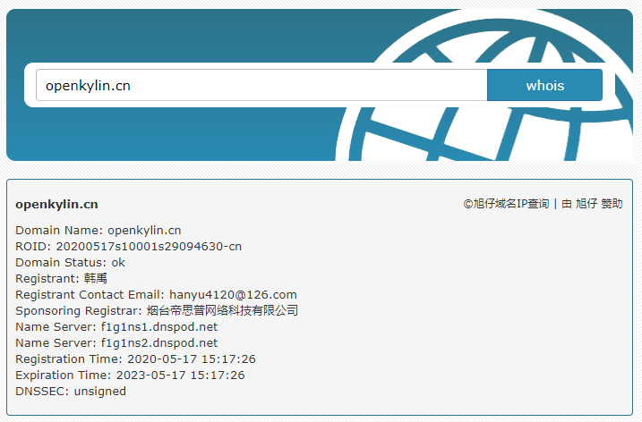 而openkylin.cn则是2020年就注册了。